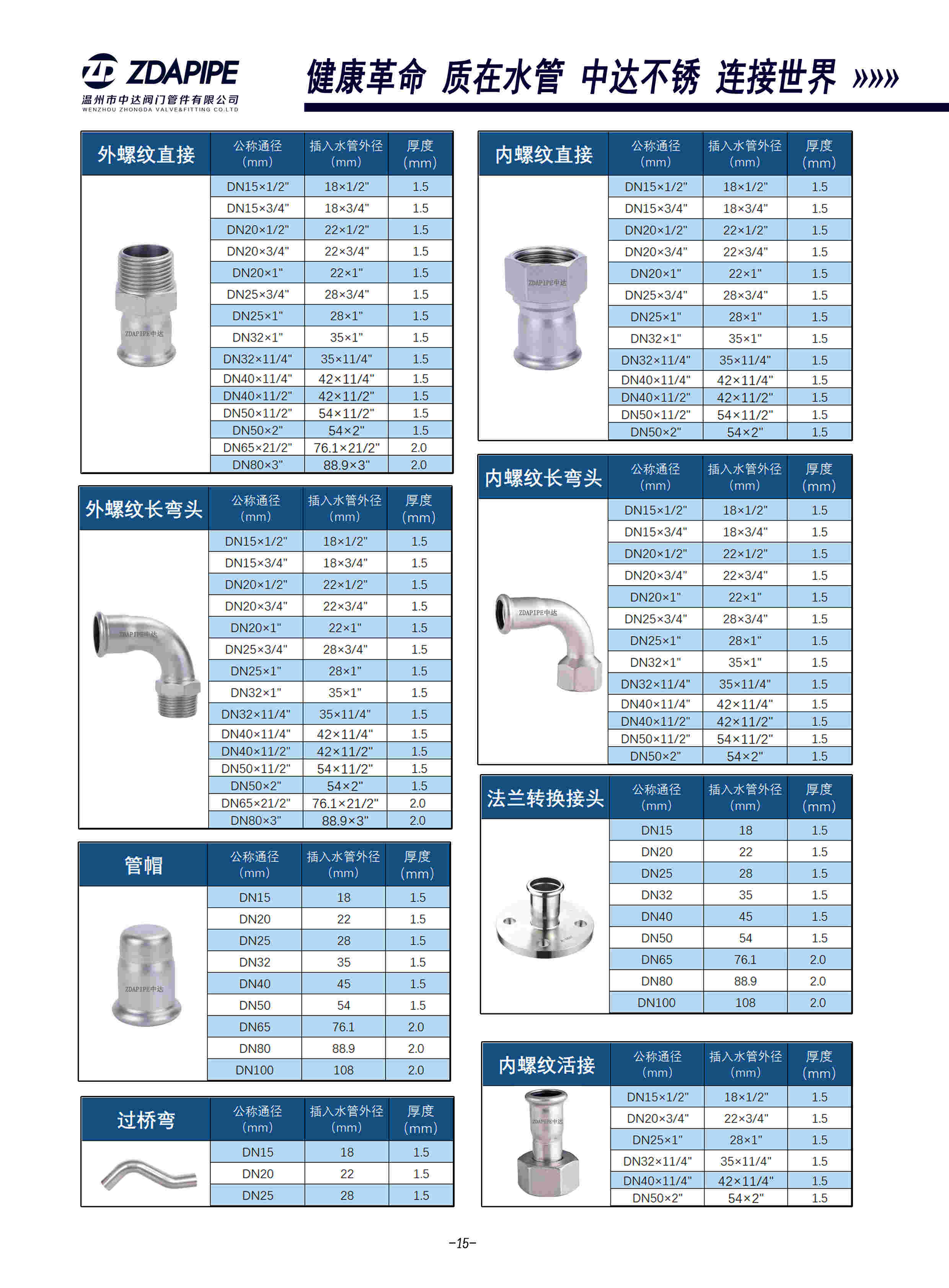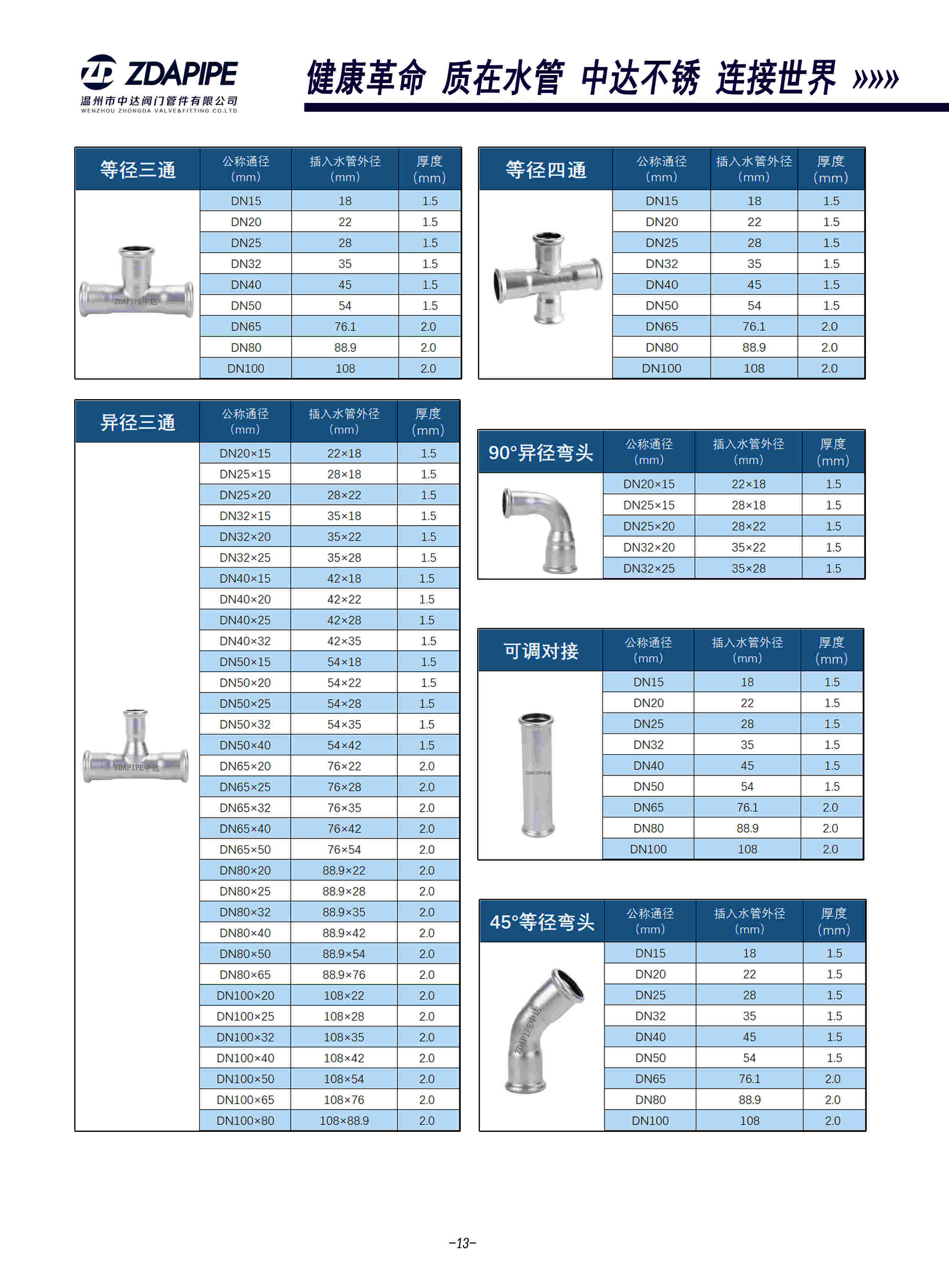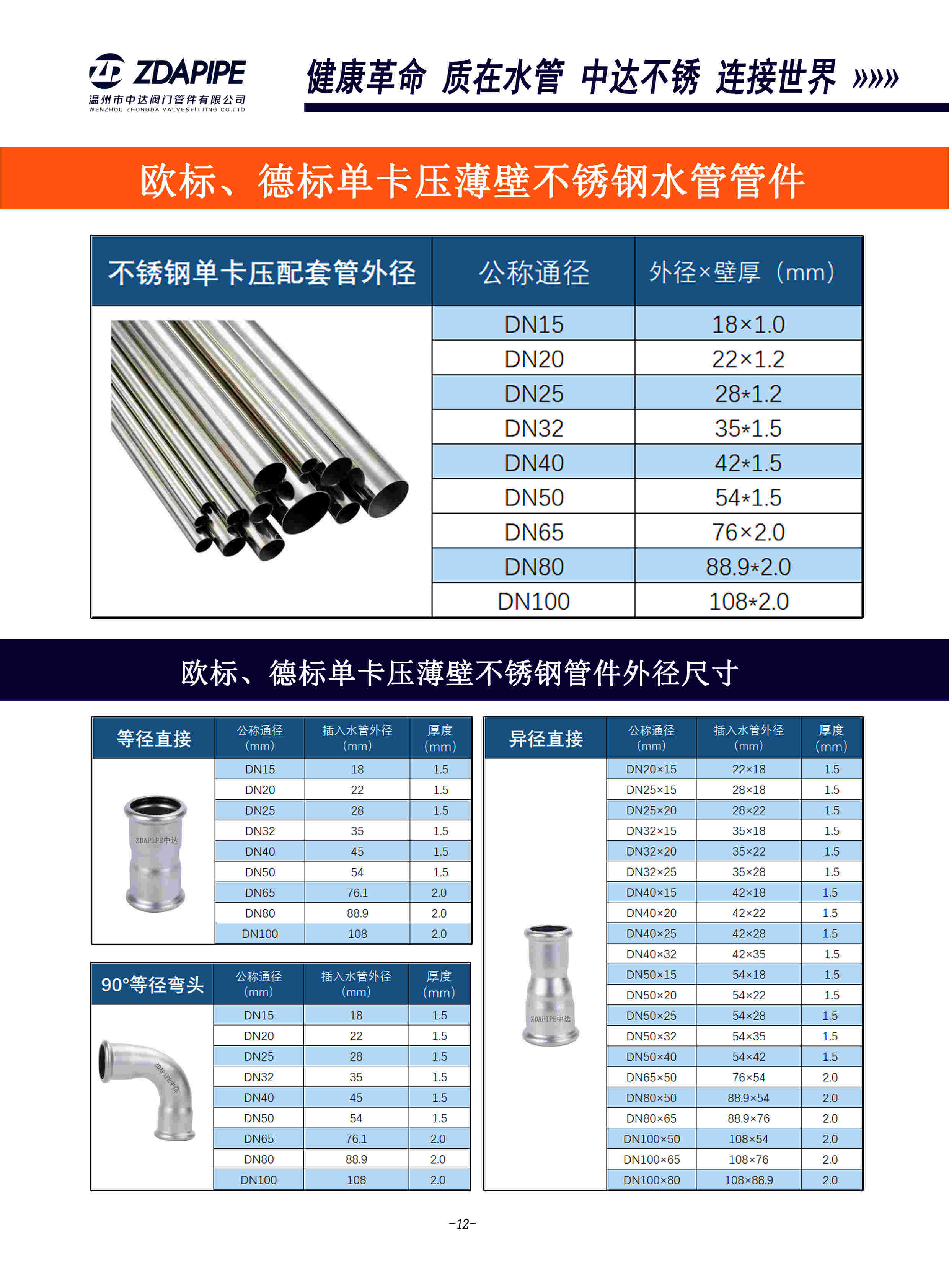 - 用途范圍:卡壓式管件廣泛應用于市政自來水管道工程,新建小區(qū)直飲水工程,工業(yè)與民用 建筑、賓館、公共建筑、睬氣供應等分供水系統(tǒng)。給水,排水,二次供水,太陽能,水務工程,自來水公司,醫(yī)院,學校,酒店,賓館,天然氣工程,自來水工程,直飲水工程,家裝水管工程,工業(yè)管道工程,水處理工程,清潔能源工程,綠色能源,健康革命,質在水管,中達不銹,連接世界。