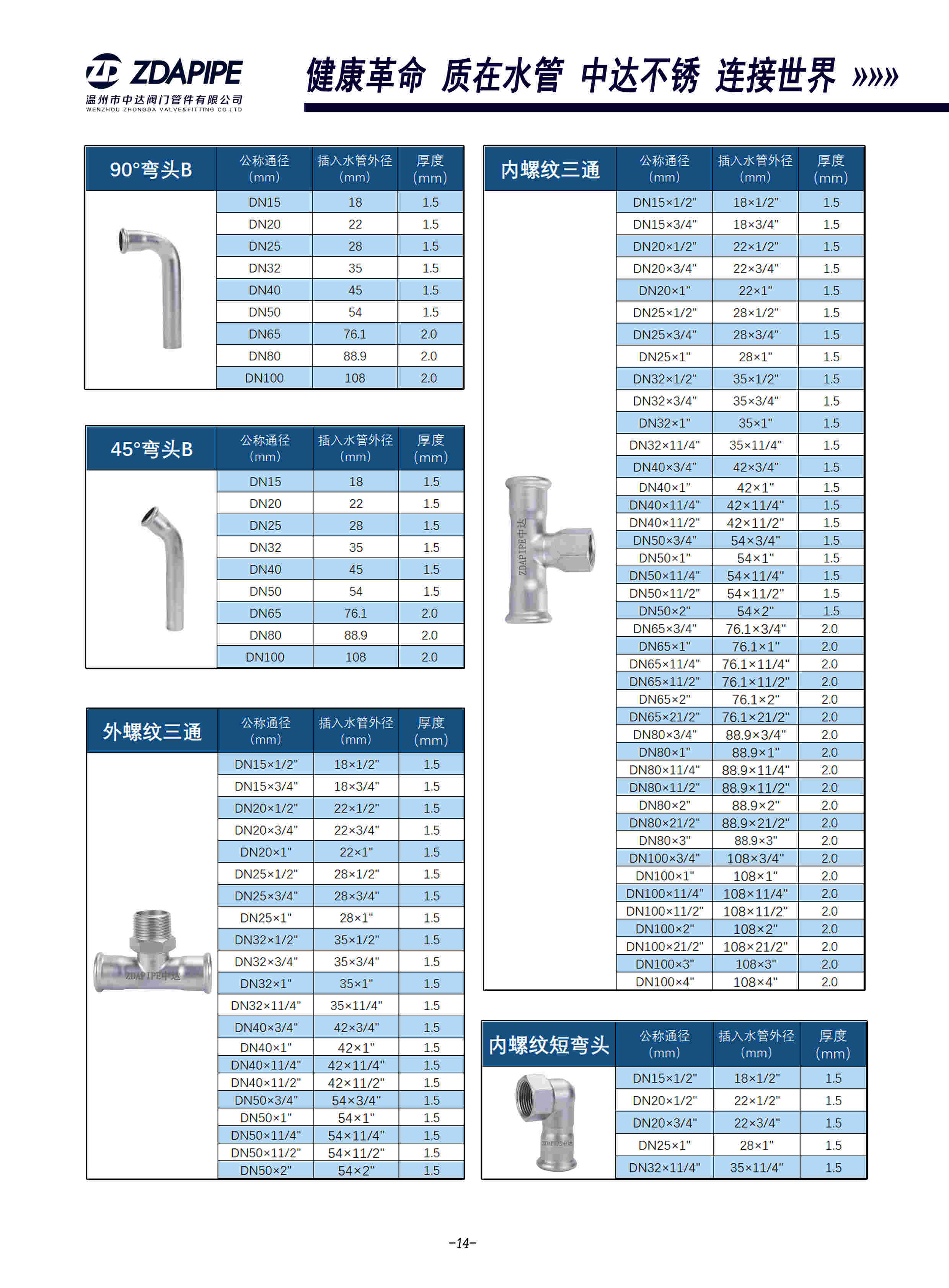 - 執(zhí)行標準:CJ/T 152-2016《薄壁不銹鋼卡壓式和溝槽式管件》